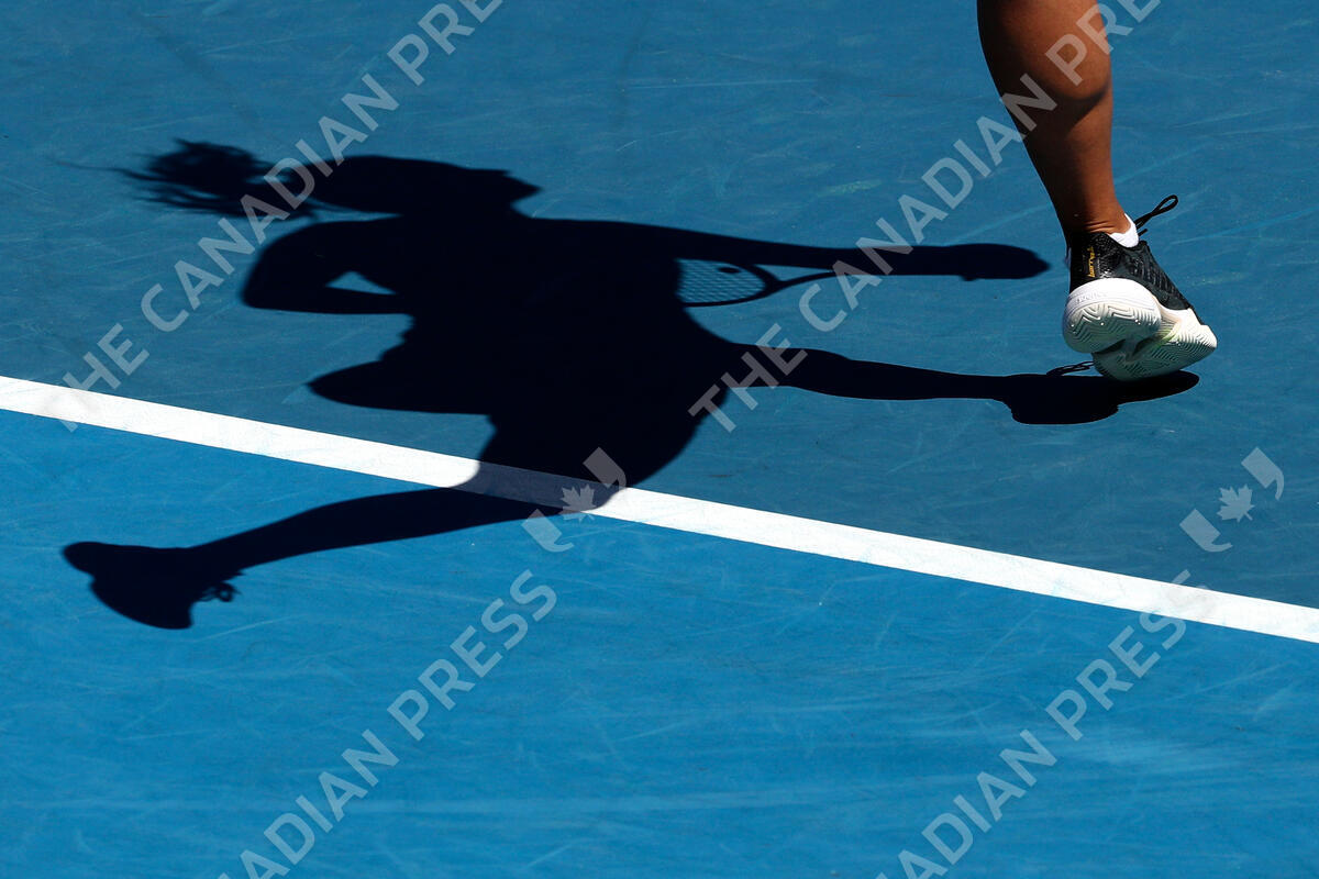 Daria Kasatkina of Russia serves to Magda Linette of Poland during their second round match at the Australian Open tennis championships in Melbourne, Australia, Thursday, Jan. 20, 2022. (AP Photo/Tertius Pickard)