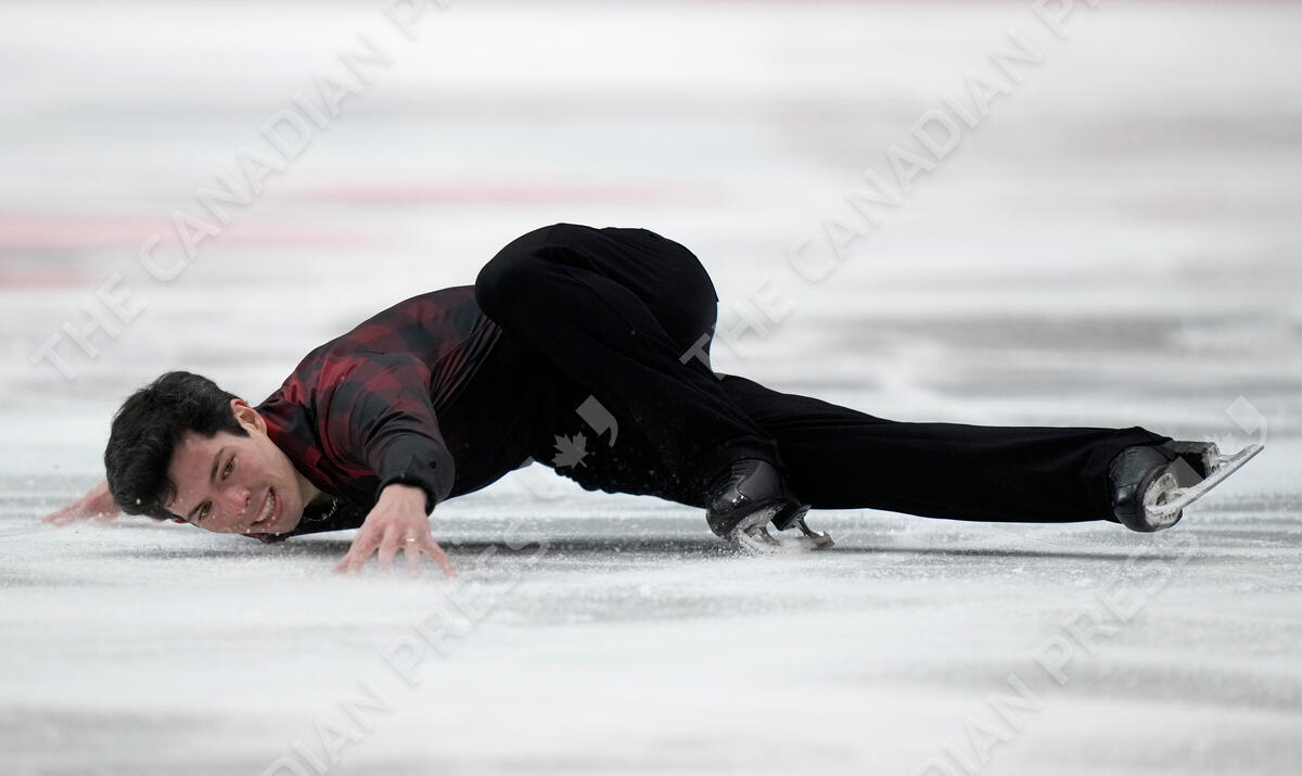 Keegan Messing performs his routine during the senior men's free program at the National Skating Championships, Saturday, Jan. 8, 2022 in Ottawa. THE CANADIAN PRESS/Adrian Wyld