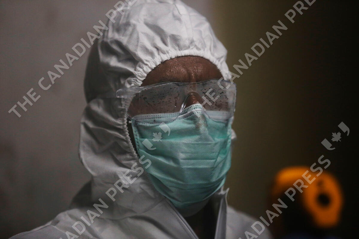 A health worker screens people for COVID-19 symptoms at residential building in Dharavi, one of Asia's largest slums, in Mumbai, India, Friday, July 17, 2020.India crossed 1 million coronavirus cases on Friday, third only to the United States and Brazil, prompting concerns about its readiness to confront an inevitable surge that could overwhelm hospitals and test the country's feeble health care system. (AP Photo/Rafiq Maqbool)