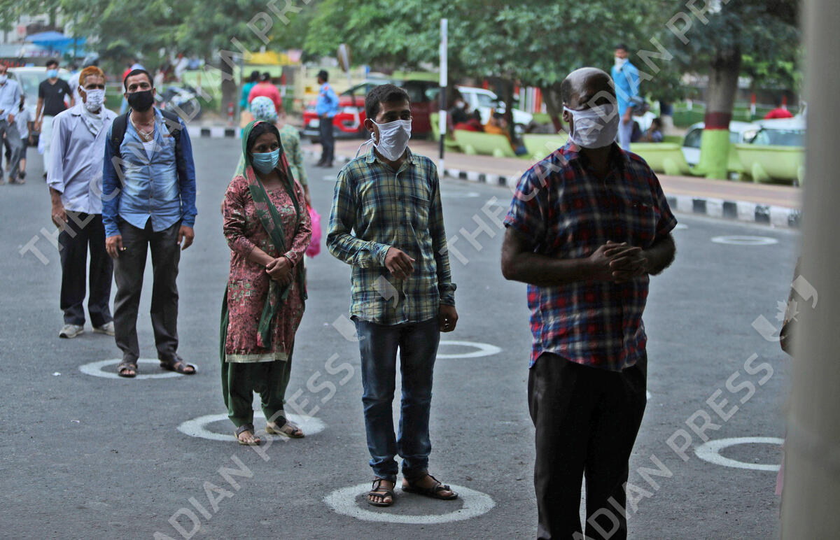 People wearing face masks wait to enter a government- run hospital in Jammu, India, Friday, July 17, 2020. India crossed 1 million coronavirus cases on Friday, third only to the United States and Brazil, prompting concerns about its readiness to confront an inevitable surge that could overwhelm hospitals and test the country's feeble health care system. (AP Photo/Channi Anand)