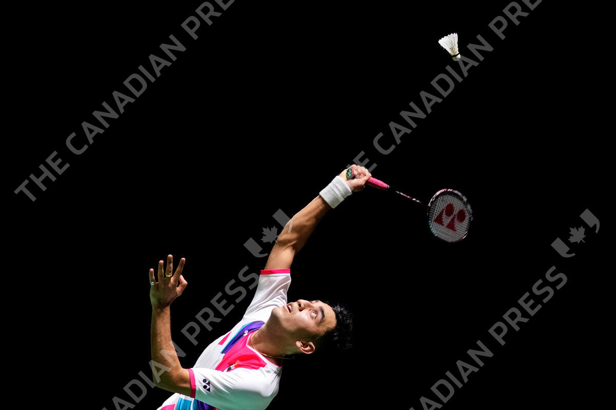 India's Lakshya Sen competes against Denmark's Viktor Axelsen during their men's singles badminton group stage match at the BWF World Tour Finals in Nusa Dua, Bali, Indonesia, Thursday, Dec. 2, 2021. (AP Photo/Dita Alangkara)