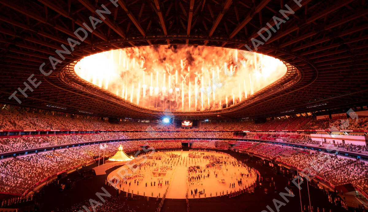 Fireworks illuminate the opening ceremonies during the Tokyo Olympics in Tokyo, Japan on Friday, July 23, 2021. THE CANADIAN PRESS/Adrian Wyld