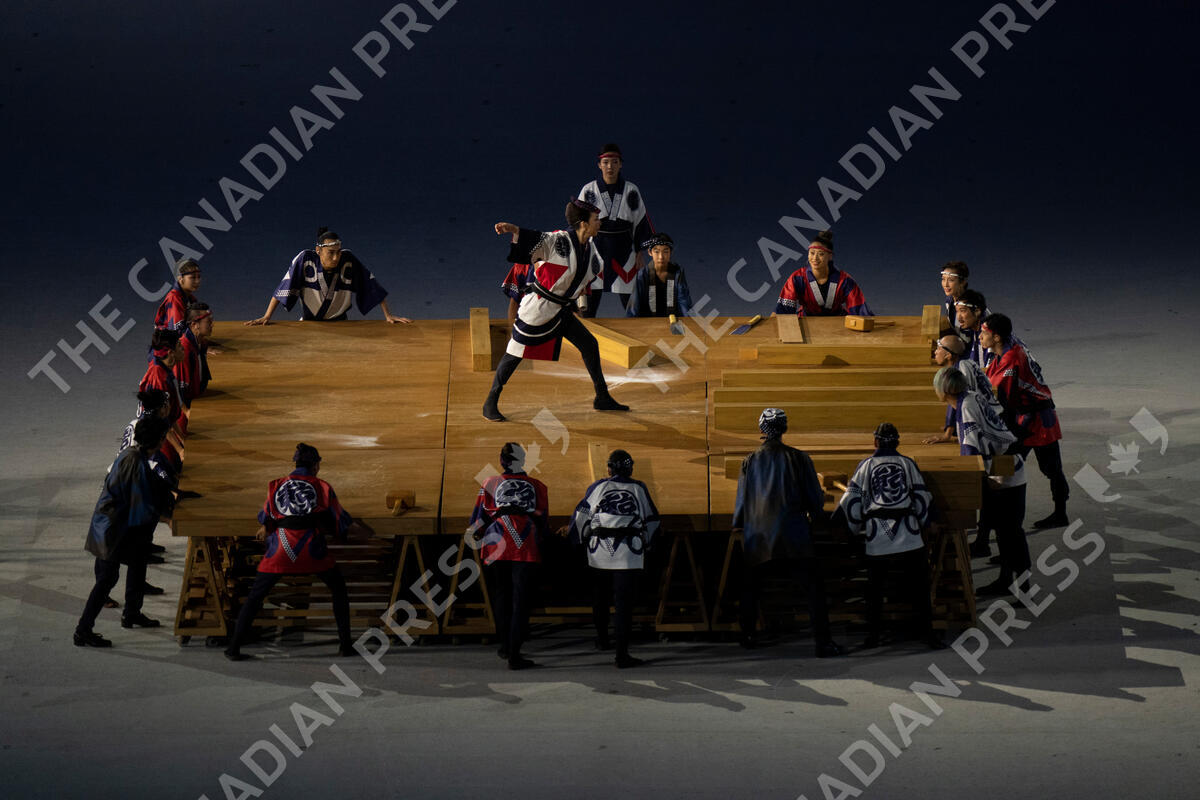 Dancers perform during the opening ceremonies during the Tokyo Olympics in Tokyo, Japan on Friday, July 23, 2021. THE CANADIAN PRESS/Adrian Wyld