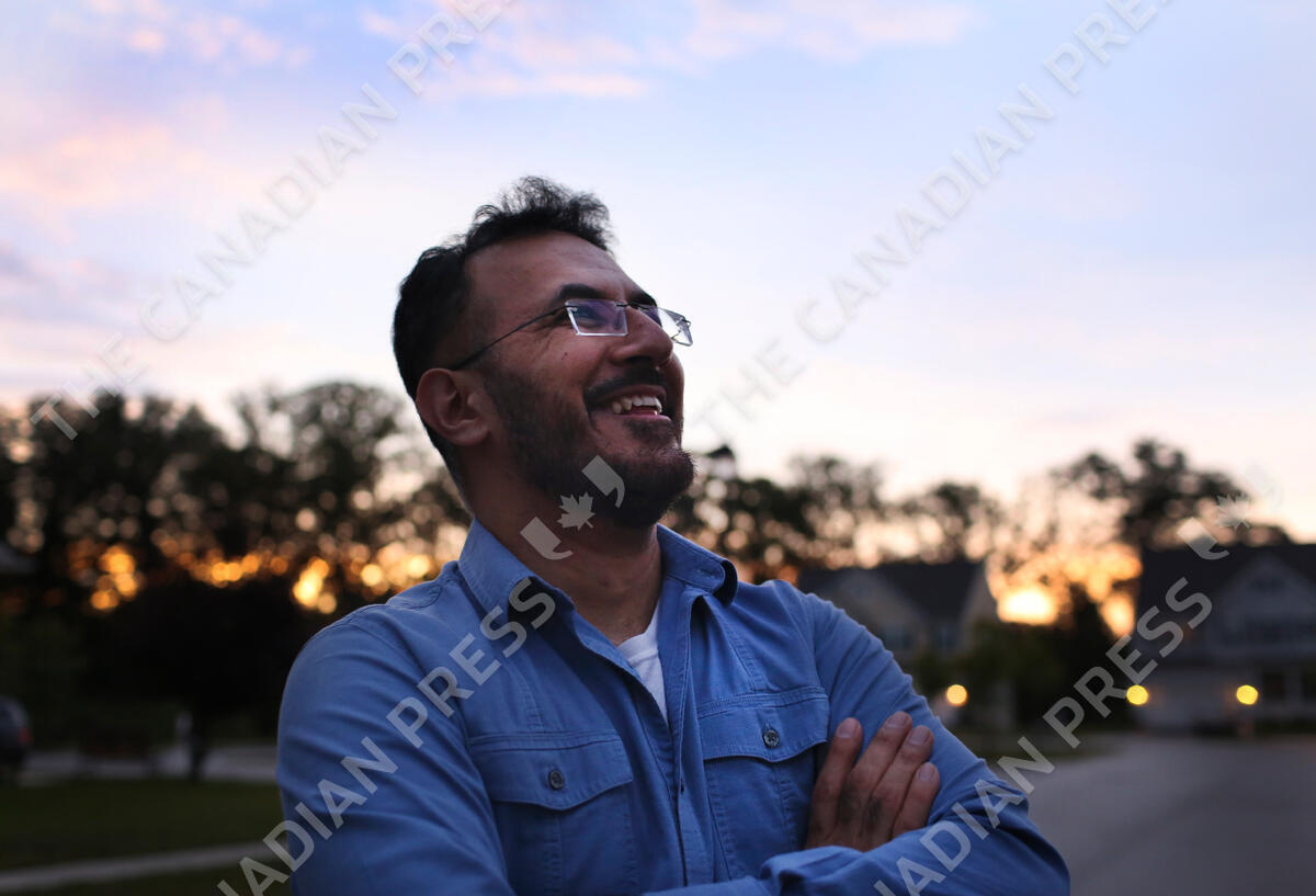Mansoor Shams, a former US Marine, stands at the end of his driveway on Friday evening, Aug. 13, 2021 in Baltimore. Shams, who served in the Marines from 2000 to 2004, was called names like "Taliban," "terrorist" and "Osama bin Laden" by some of his fellow Marines after 9/11. In recent years, Shams has used his identity as both a Muslim and a former Marine to dispel misconceptions about Islam. (AP Photo/Jessie Wardarski)