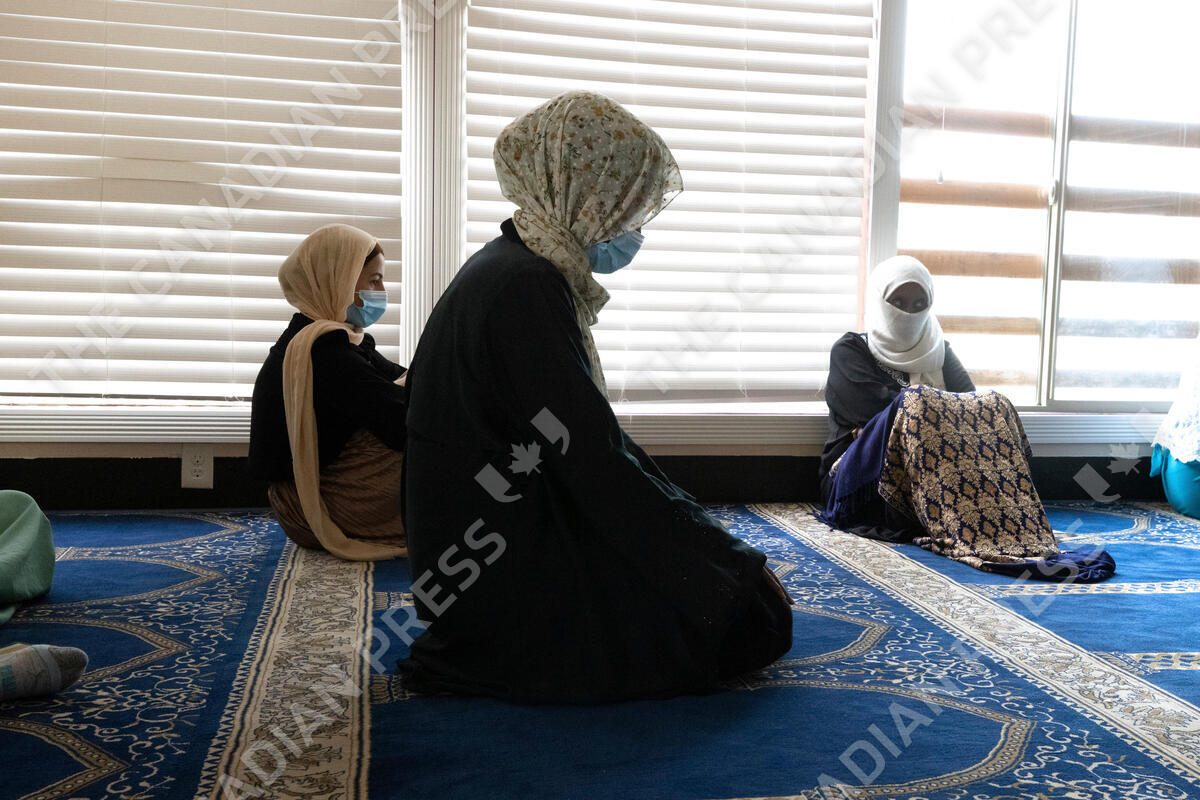 Shukri Olow, center, a Muslim woman who is running for King County Council District 5, prays at the Islamic Center of Kent, Friday, Aug. 13, 2021, in Kent, Wash., south of Seattle. Muslim Americans in their 20s and 30s who grew up amid the aftershocks of the Sept. 11, 2001 terrorist attacks came of age in a world not necessarily attuned to their interests, their happiness and their well-being. Olow says the aftermath of the attacks has helped motivate her to become a community organizer and to run for office in Washington state. (AP Photo/Karen Ducey)