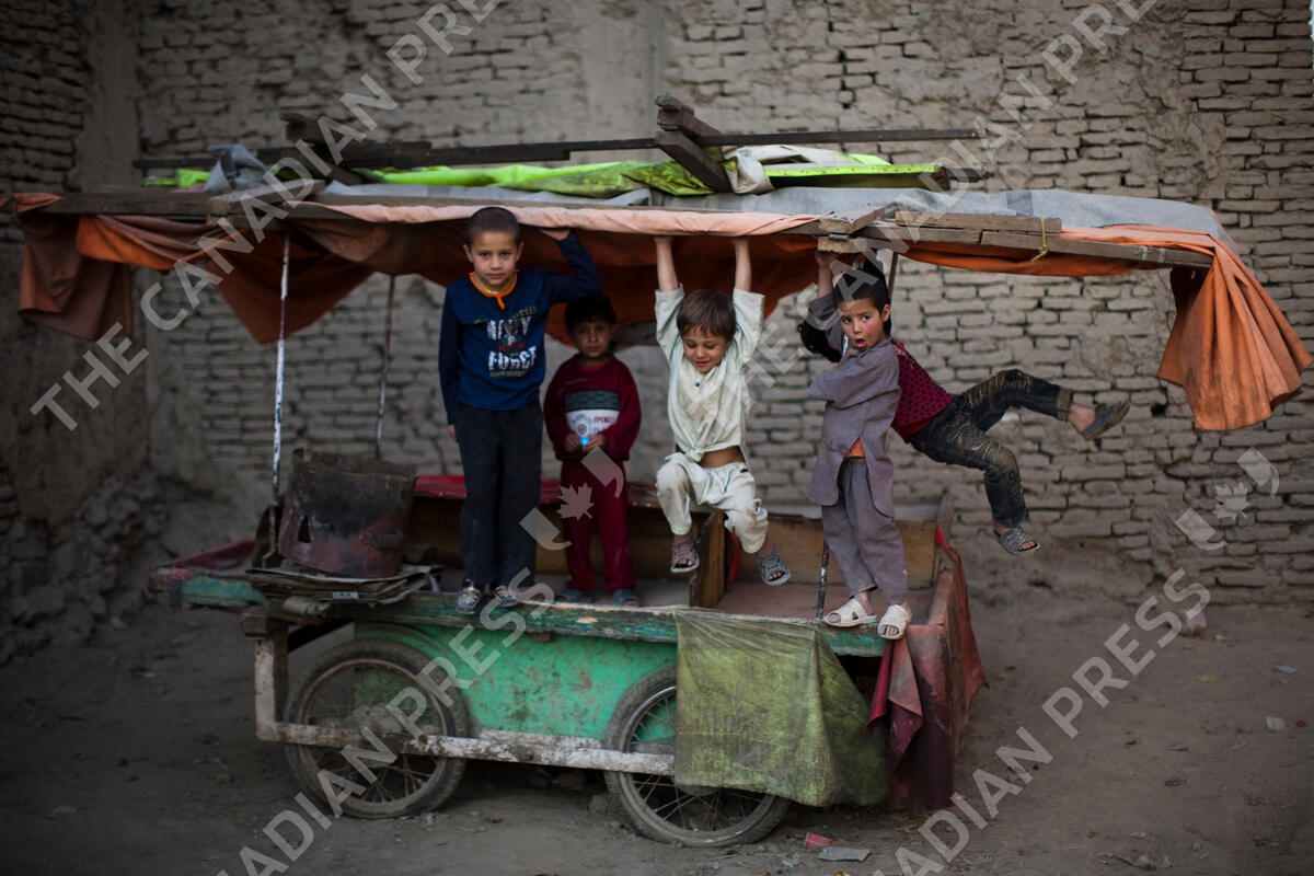ADVANCE FOR PUBLICATION ON FRIDAY, SEPT. 3, AND THEREAFTER - FILE - In this Sunday, Oct. 31, 2010 file photo, children play on a market cart in the old part of Kabul, Afghanistan. (AP Photo/Rodrigo Abd, File)