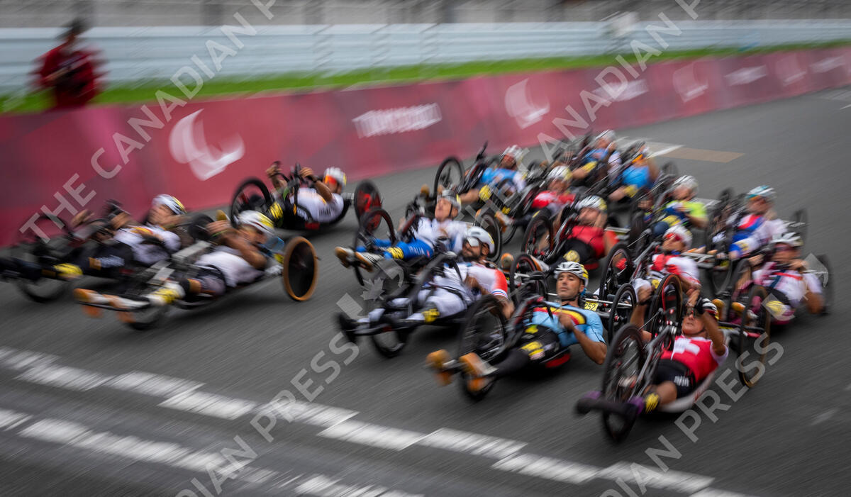 Athletes compete at Men's H3 Road Race at the Tokyo 2020 Paralympic Games, Wednesday, Sept. 1, 2021, in Tokyo, Japan. (AP Photo/Emilio Morenatti)