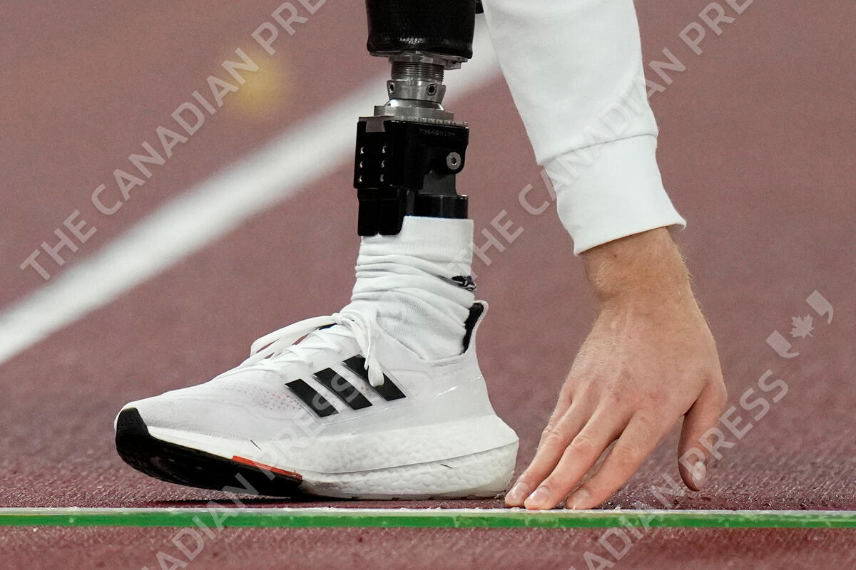 Germany's Markus Rehm checks the line before the start of the men's long jump T64 final in the 2020 Paralympics at the National Stadium in Tokyo, Wednesday, Sept. 1, 2021. (AP Photo/Eugene Hoshiko)