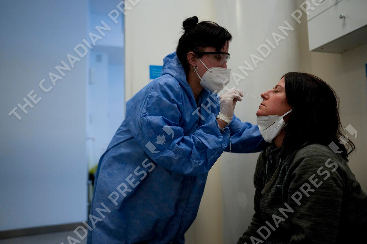 A heath worker is about to take a sample for the first COVID-19 test in Buenos Aires, Argentina, Thursday, July 15, 2021. (AP Photo/Natacha Pisarenko)