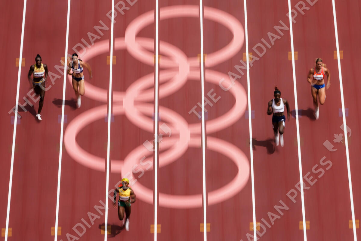 Shelly-Ann Fraser-Pryce, of Jamaica, wins her heat during the semifinals in the women's 200-meter at the 2020 Summer Olympics, Monday, Aug. 2, 2021, in Tokyo. (AP Photo/Morry Gash)