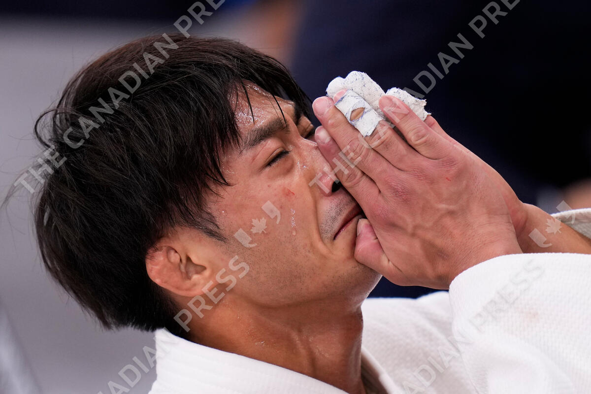 Yang Yung-wei, of Taiwan, reacts after his loss to Naohisa Takato, of Japan, in a men's 60kg judo gold medal match at the 2020 Summer Olympics, Saturday, July 24, 2021, in Tokyo. (AP Photo/Jae C. Hong)