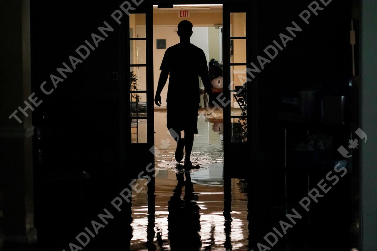 A resident's relative walks through the Peach Tree Village nursing home to collect family possessions from the flooded facility in Brandon, Miss., following a morning of torrential rains, Wednesday, Aug. 24, 2022. Heavy rains and flash flooding prompted rescue operations, closures and evacuations in the central part of the state. (AP Photo/Rogelio V. Solis)