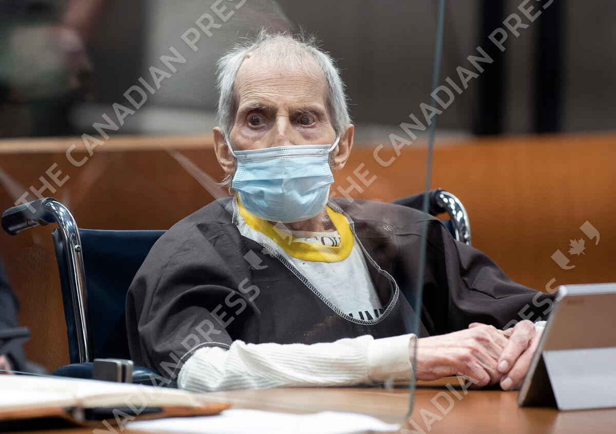 New York real estate heir Robert Durst is sentenced to life in prison without the possibility of parole for killing his best friend Susan Berman at the Airport Courthouse, Thursday, Oct. 14, 2021, in Los Angeles. (Myung J. Chung/Los Angeles Times via AP, Pool)