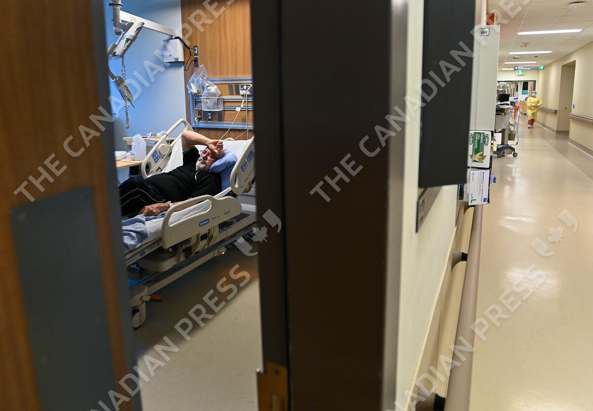 Jose Garcia, 67, receives oxygen in the respirology unit as he is battling COVID-19 at the Humber River Hospital during the COVID-19 pandemic in Toronto on Tuesday, April 13, 2021. THE CANADIAN PRESS/Nathan Denette