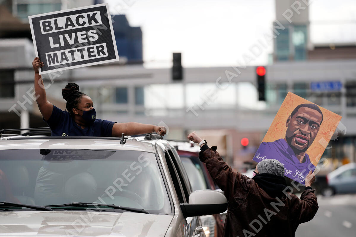 People celebrate after a guilty verdict was announced at the trial of former Minneapolis police Officer Derek Chauvin for the 2020 death of George Floyd, Tuesday, April 20, 2021, in Minneapolis. Chauvin has been convicted of murder and manslaughter in the death of Floyd. (AP Photo/Morry Gash)