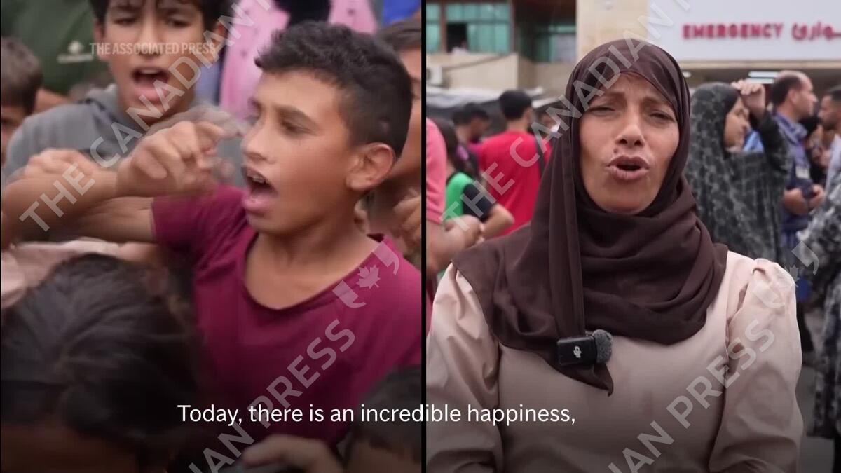 Celebrations in central Gaza Strip after Israel and Hamas agree to the 'first phase' of peace plan