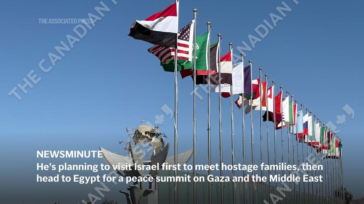 Here's the latest for Sunday, Oct.12th: China vows to stand firm after Trump's tariff threat; Trump heads to Middle East; Helicopter crashed at a Southern California beach; Spanish royals lead National Day parade.