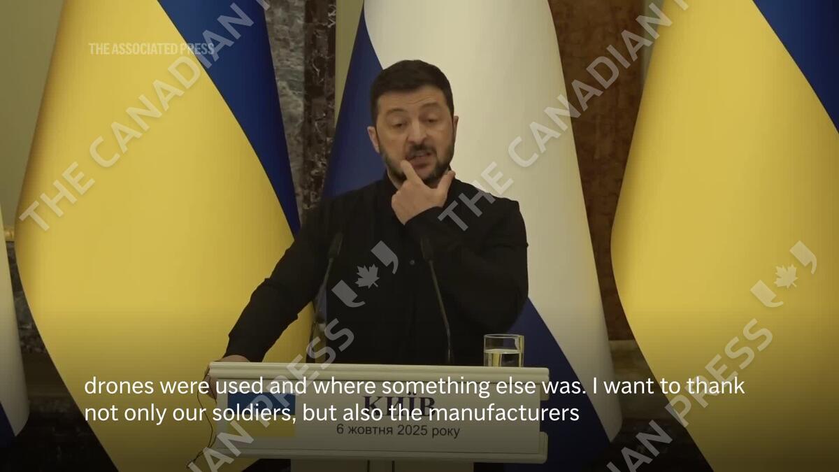 Ukraine used only domestically produced weapons — not just drones — in its recent strikes on Russian territory and expects to expand such capabilities depending on available funding, President Volodymyr Zelenskyy said Monday (AP video shot by Alex Babenko).
