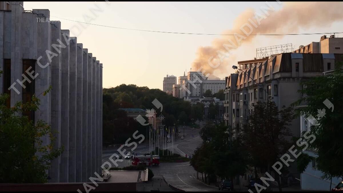 Smoke rises from roof of a key government building after mass Russian attack on Kyiv