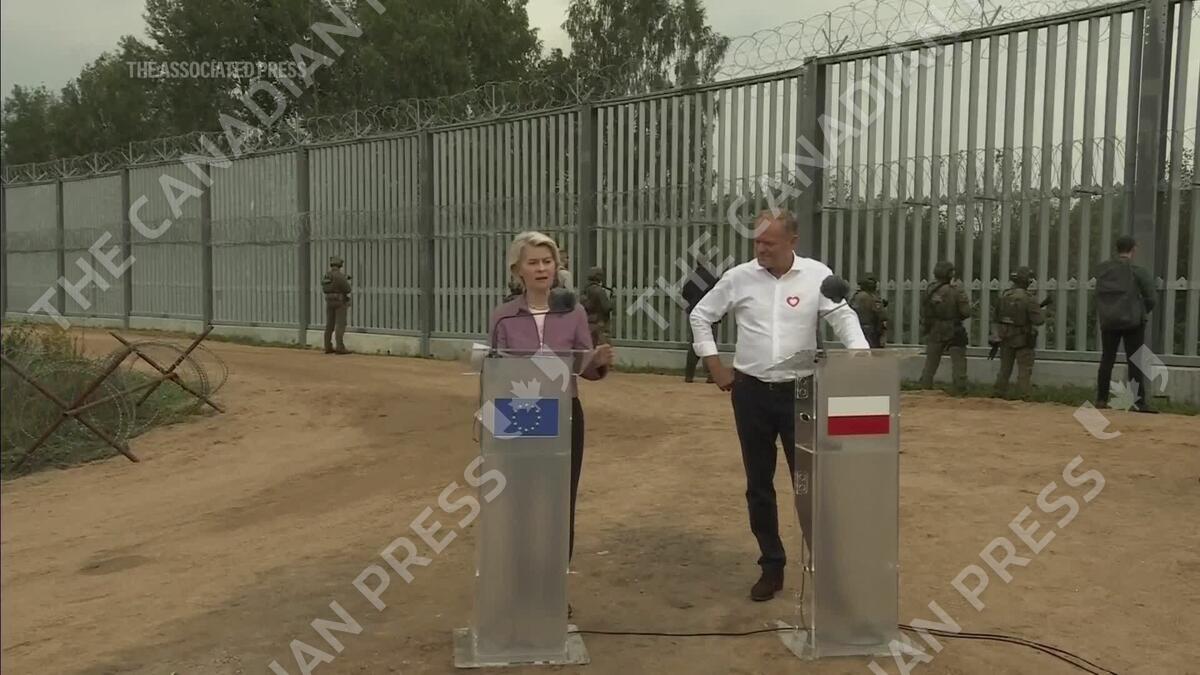Von der Leyen visits Poland-Belarus border with Tusk, calls for 'strong' EU defense posture