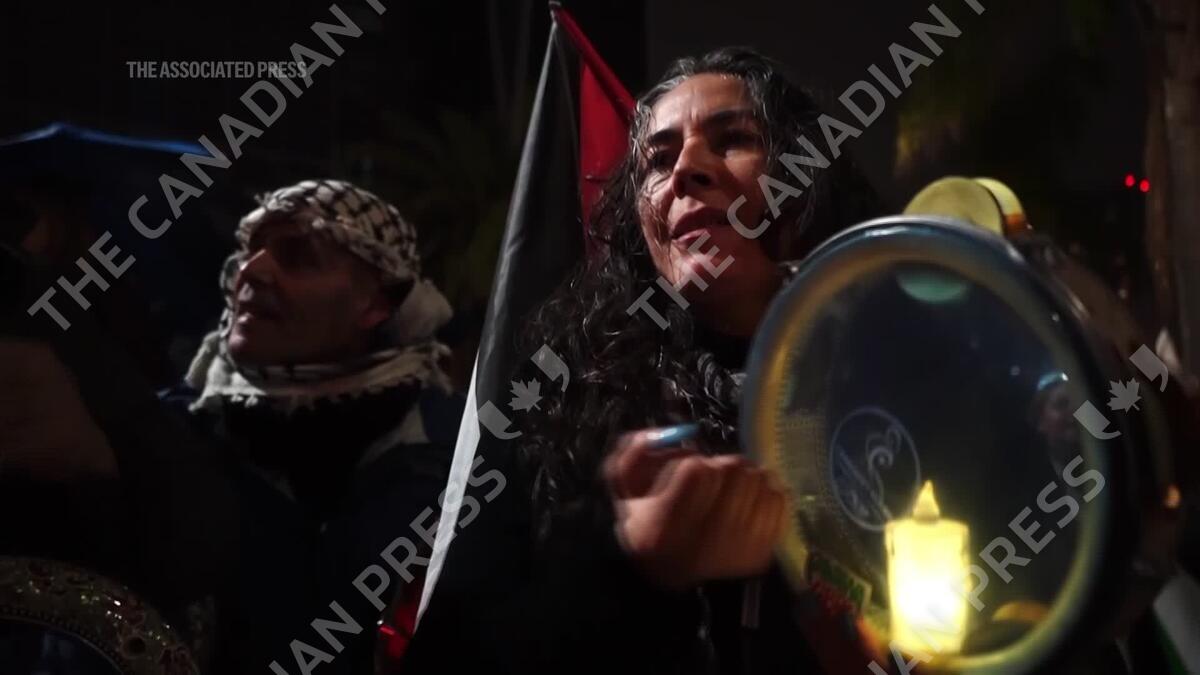 Dozens of people took to the streets of Chile's capital on Saturday as part of a night walk demonstration in solidarity with Palestinians in the Gaza Strip and the West Bank. Demonstrators lit candles, carried Palestinian flags and banners, and chanted as they called for an end to the killing of children in Gaza.
