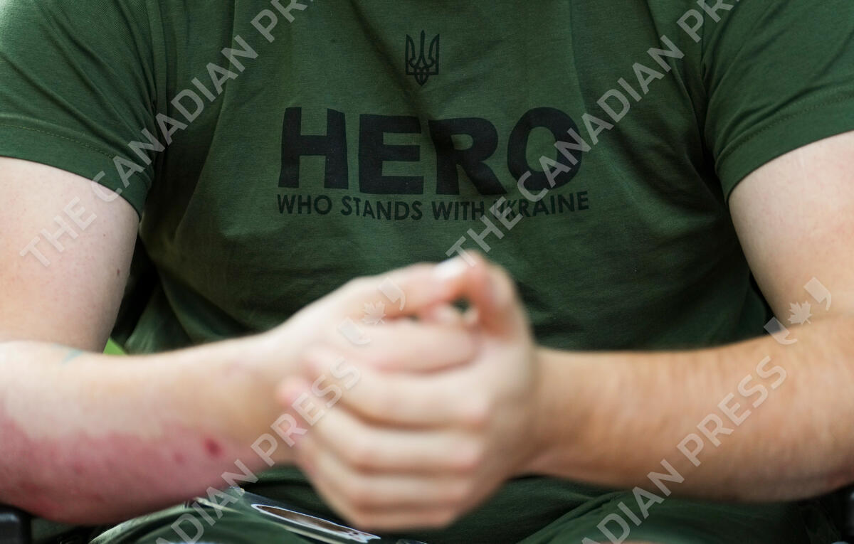 Canadian Mac Hughes who was injured by a Russian drone attack while fighting for Ukraine in July of 2025 is pictured in Kyiv, Ukraine, on Monday, Aug. 25, 2025. THE CANADIAN PRESS/Sean Kilpatrick