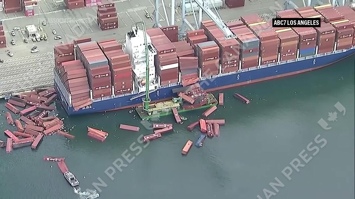 CP174979558 | Dozens of containers have toppled off a cargo ship in the Port of Long Beach