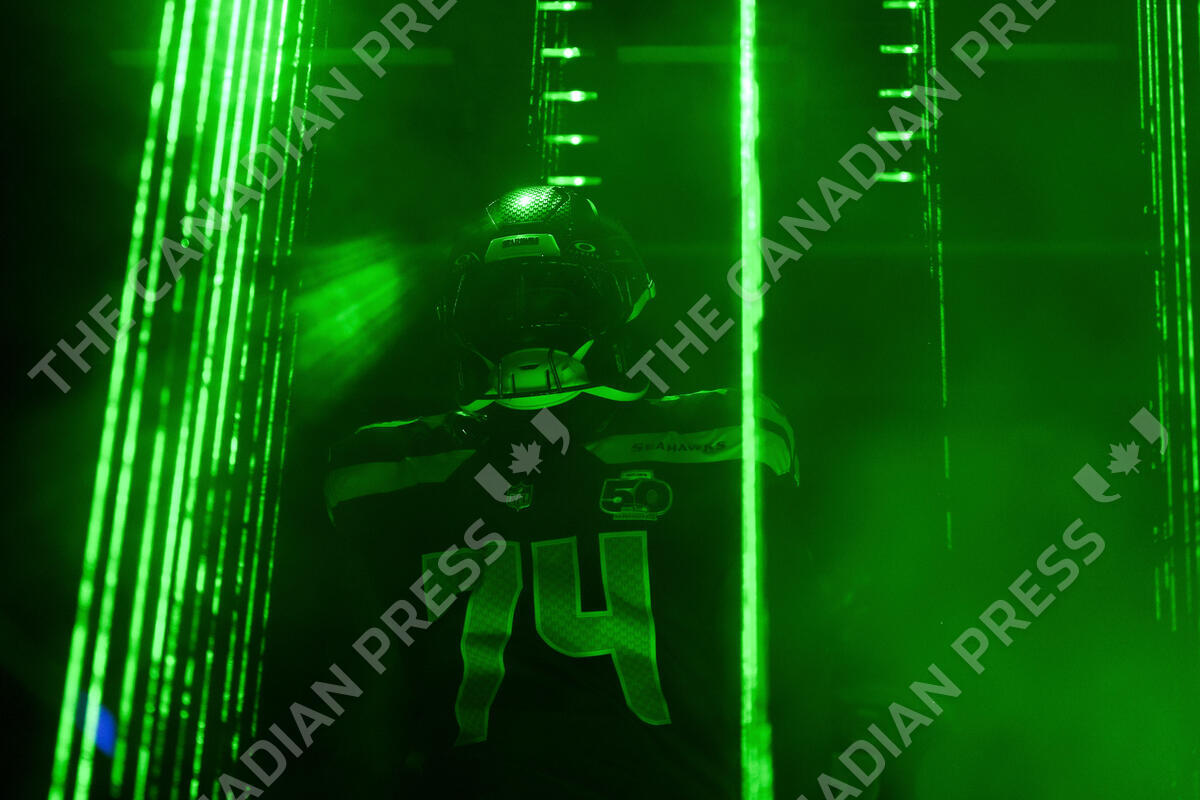 Seattle Seahawks guard Josh Jones (74) prepares to go onto the field before an NFL football game against the San Francisco 49ers, Sunday, Sept. 7, 2025, in Seattle. (AP Photo/Lindsey Wasson)