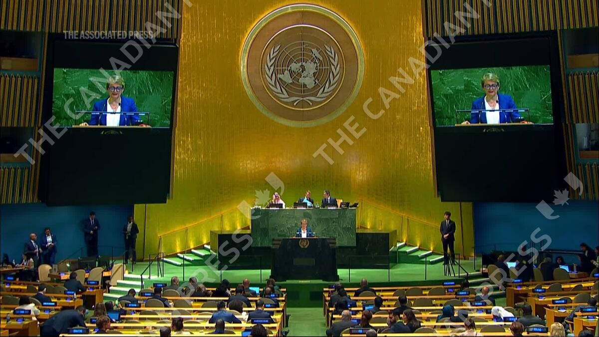 Britain's top diplomat states case for Palestinian statehood at the General Assembly in New York