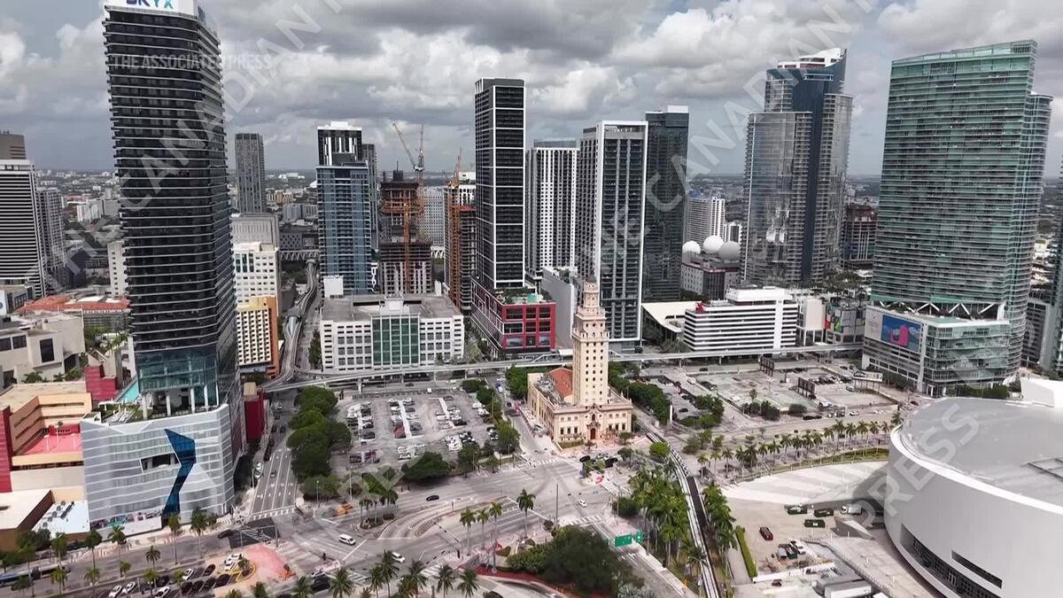 Republican Florida Gov. Ron DeSantis is pushing to establish President Donald Trump’s presidential library in an iconic stretch of downtown Miami. DeSantis announced a plan to set aside a 2.63-acre parcel of land adjacent to the Freedom Tower. (AP Video: Daniel Kozin)
