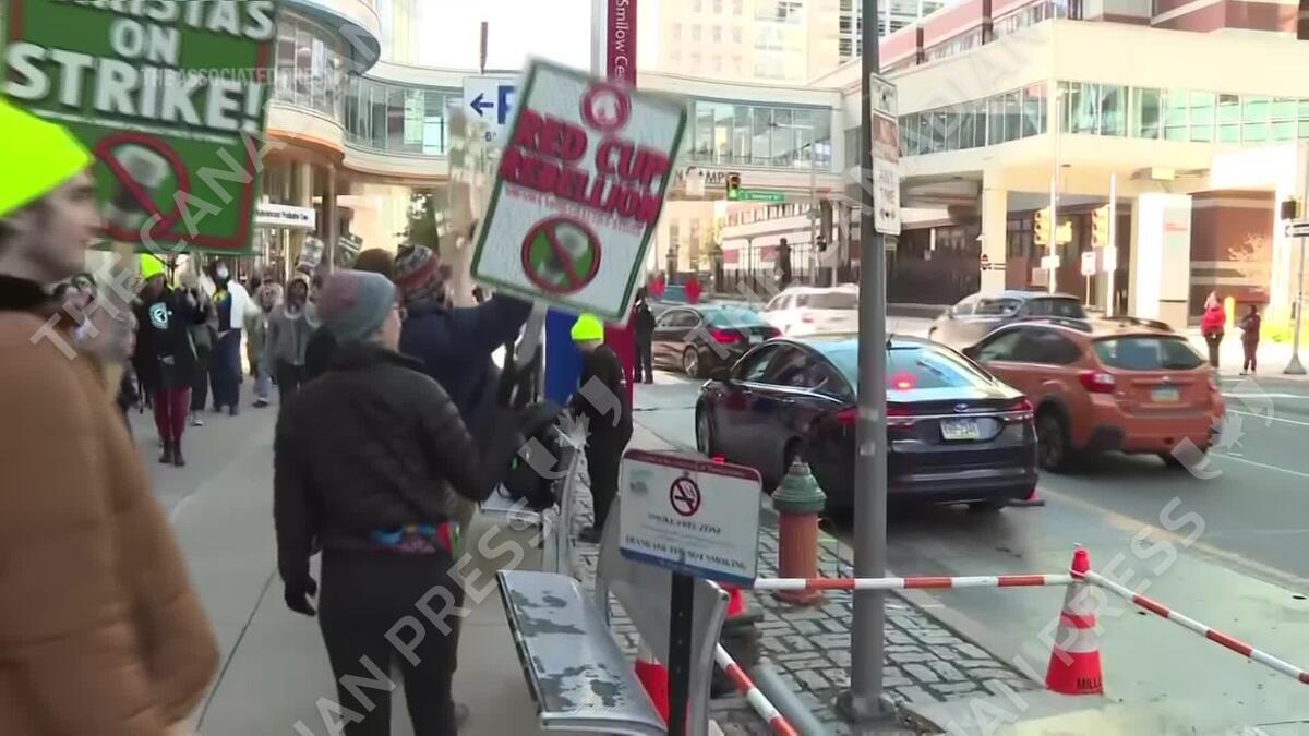 CP169115582 | New York Starbucks workers strike on "Red Cup Day"