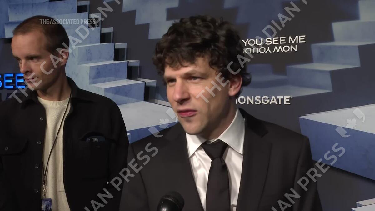 Returning for the third "Now You See Me" film, Jesse Eisenberg said he loves making movies but will not watch them because he doesn't "need to see what I look like from the side." (Nov. 10)