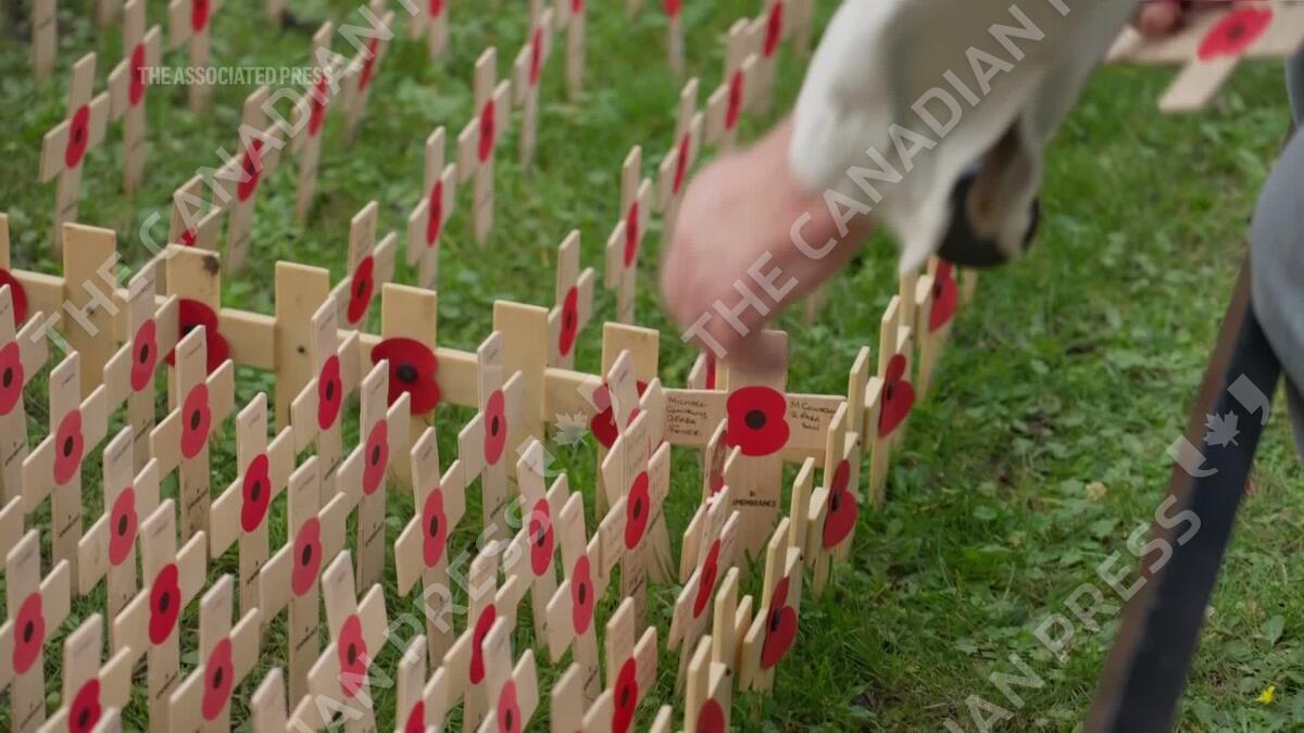 Wooden crosses and poppies were planted in the annual Field of Remembrance at London's Westminster Abbey ahead of the UK's ceremonies to remember its wartime dead. (AP video shot by Kwiyeon Ha)