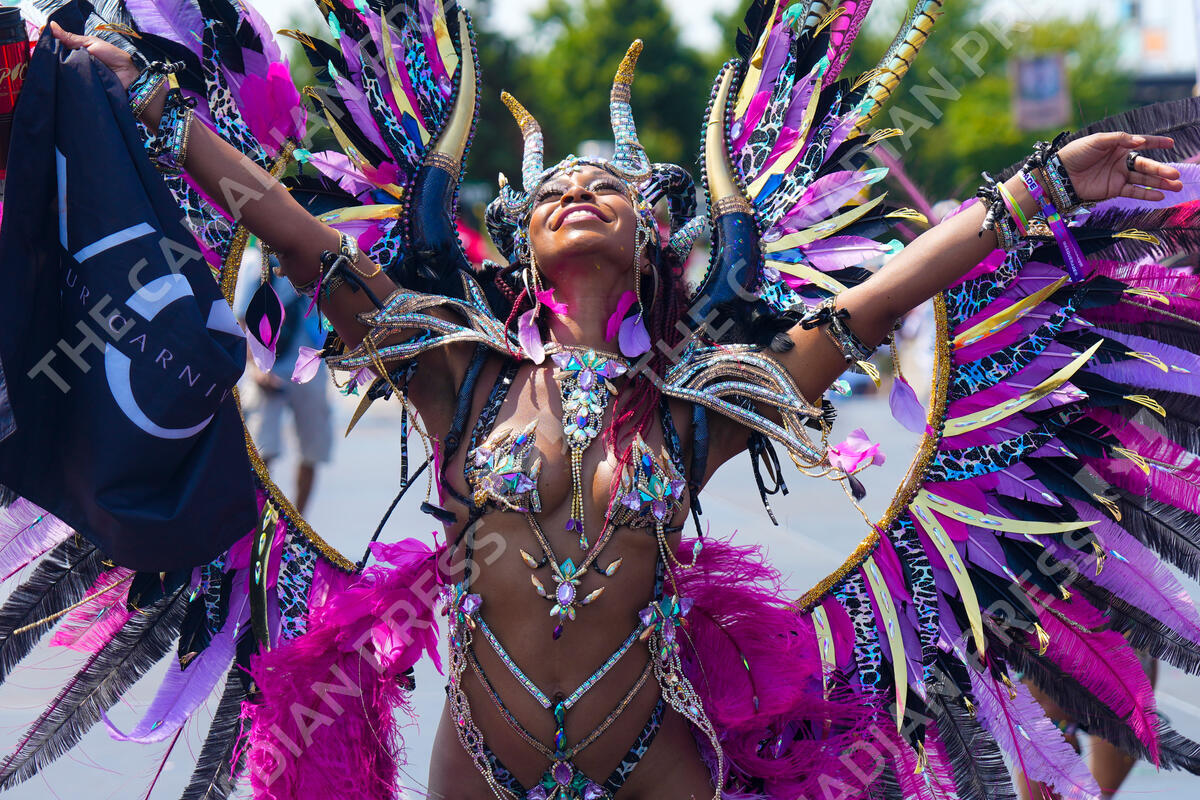 A masquerader dances at the Toronto Caribbean Carnival, on Saturday, Aug. 2, 2025. THE CANADIAN PRESS/Chris Young