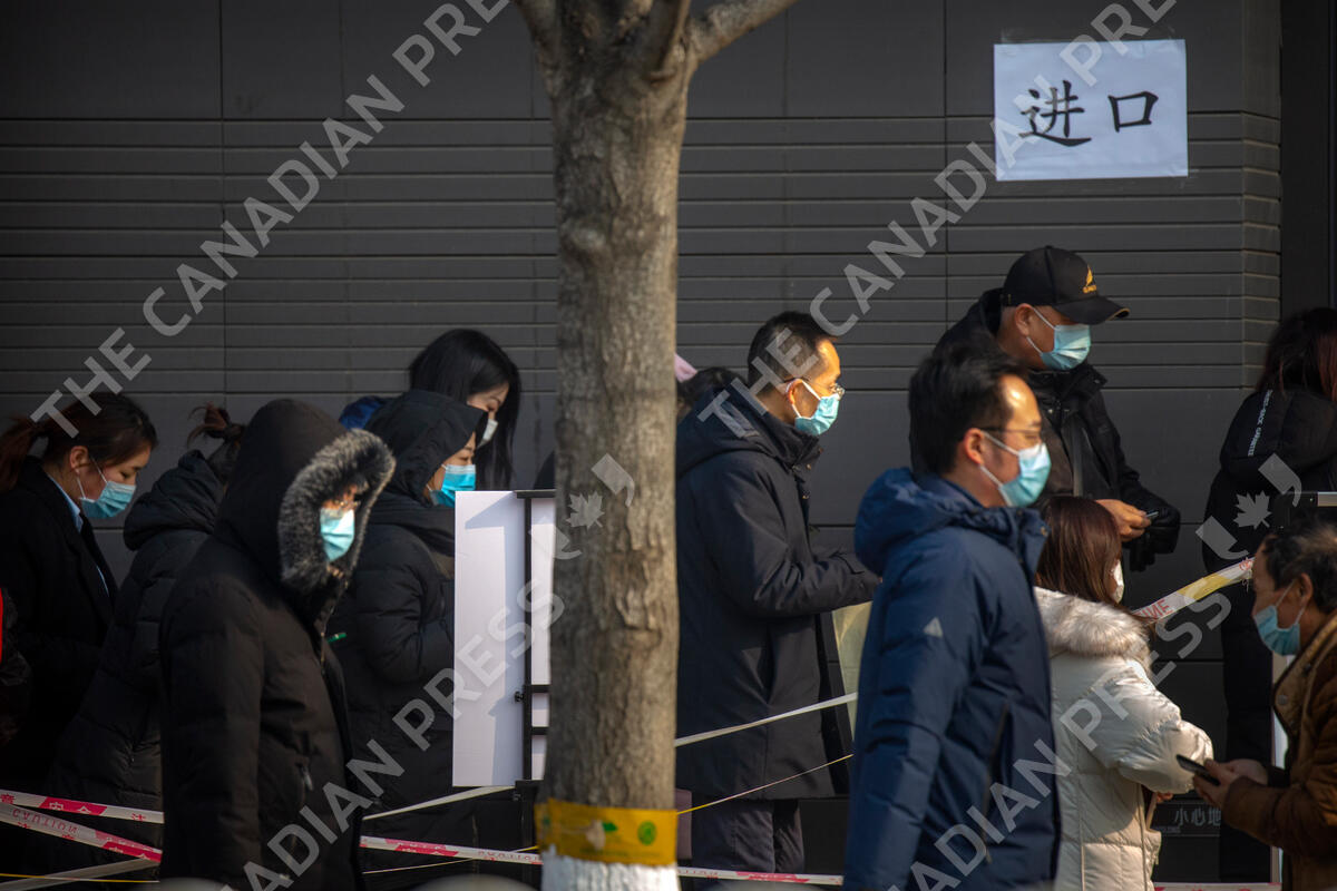 People wearing face masks to protect against the spread of the coronavirus prepare to enter a site for mass COVID-19 testing in a central district of Beijing, Friday, Jan. 22, 2021. Beijing has ordered fresh rounds of coronavirus testing for about 2 million people in the downtown area following new cases in the Chinese capital. (AP Photo/Mark Schiefelbein)