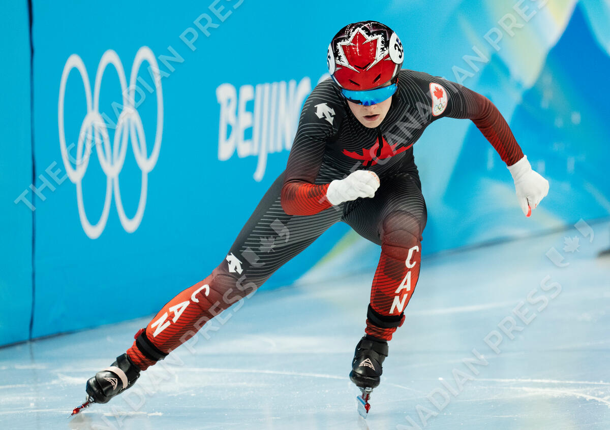 Canada's Kim Boutin heads toward a first place finish in the women’s short track 500m speed skating heats Saturday, February 5, 2022 at the 2022 Winter Olympics in Beijing. THE CANADIAN PRESS/Ryan Remiorz