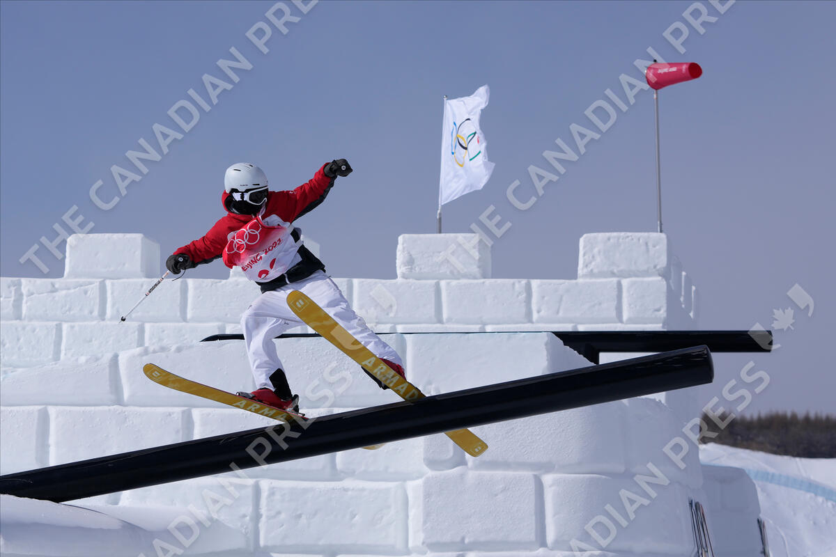 Austria's Daniel Bacher competes during the men's slopestyle qualification at the 2022 Winter Olympics, Tuesday, Feb. 15, 2022, in Zhangjiakou, China. (AP Photo/Lee Jin-man)