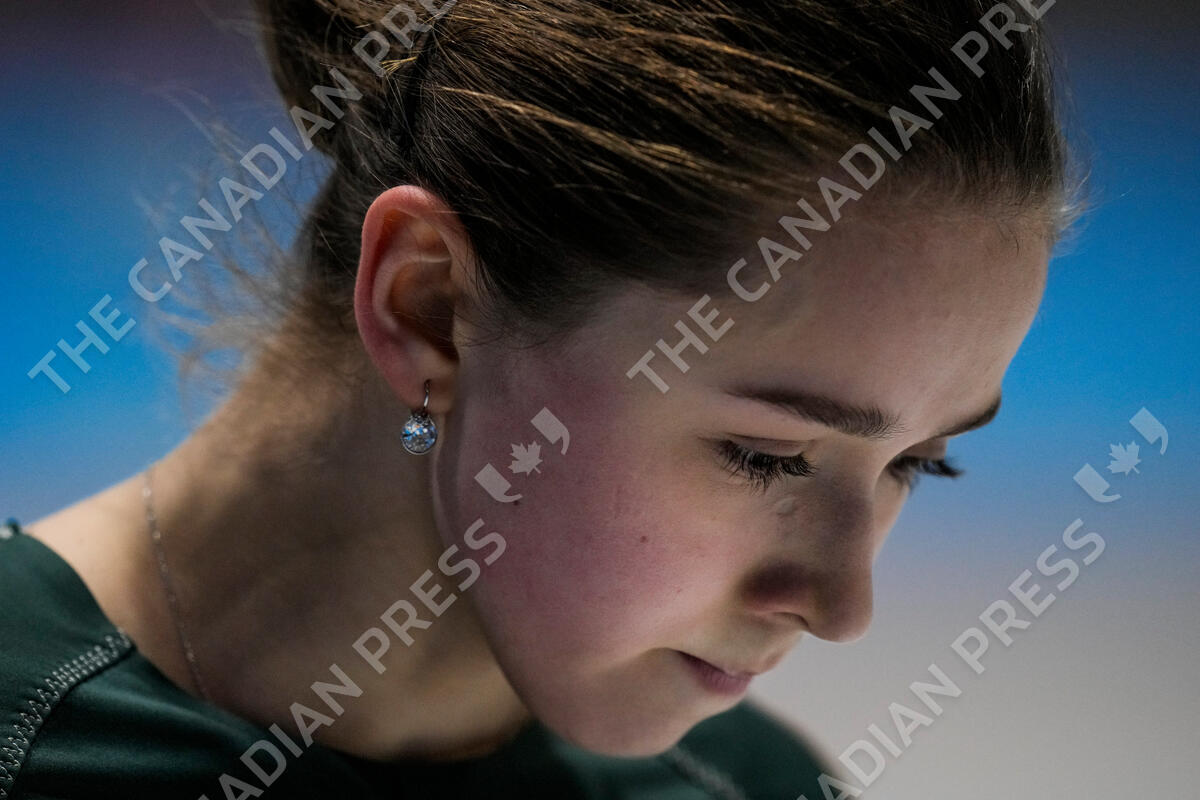 Kamila Valieva, of the Russian Olympic Committee, trains at the 2022 Winter Olympics, Saturday, Feb. 12, 2022, in Beijing. (AP Photo/Bernat Armangue)