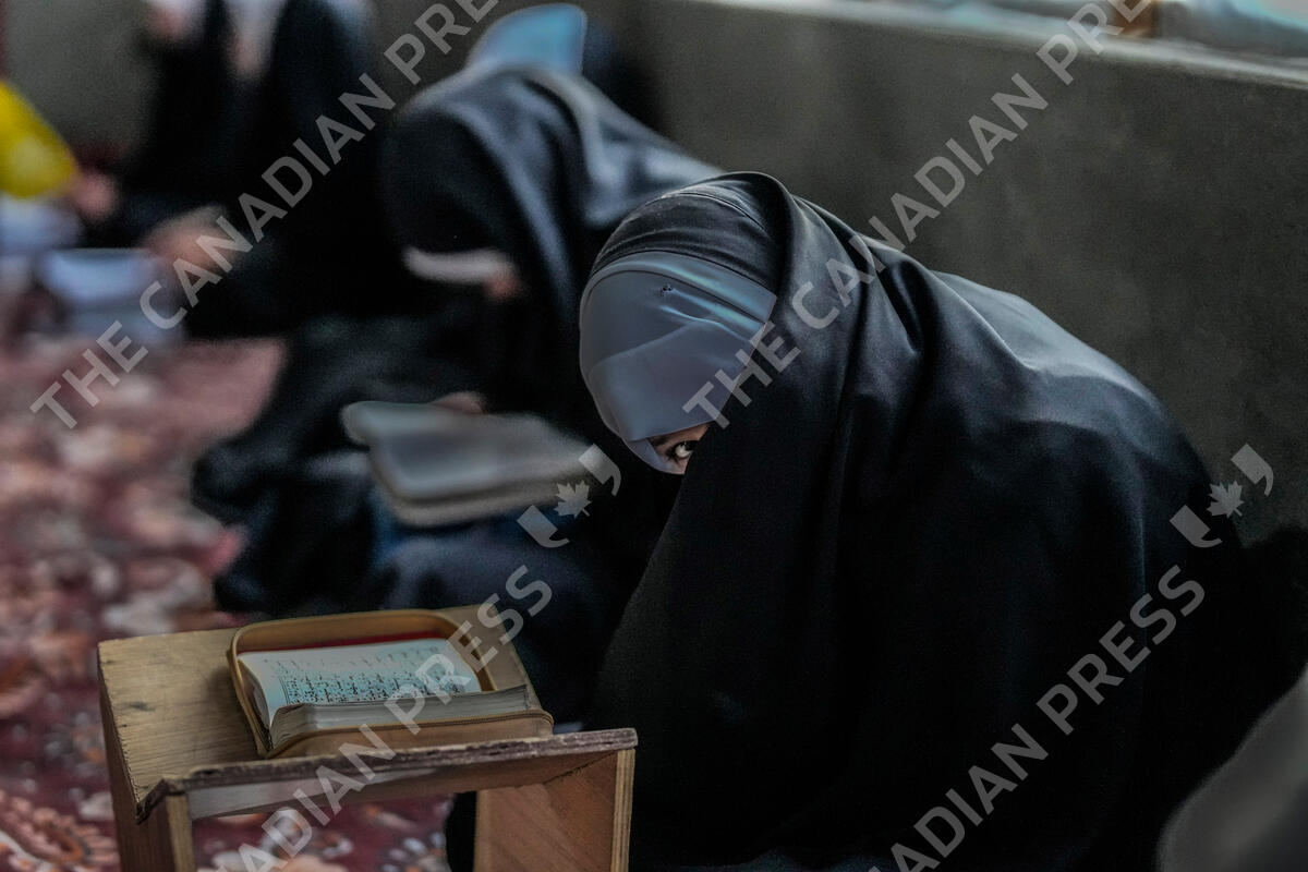 A Kashmiri Muslim girl reacts to camera as she attends recitation classes of the holy Quran during the fasting month of Ramadan in Srinagar, Indian controlled Kashmir, Sunday, March 26, 2023. Muslims across the world are observing the holy fasting month of Ramadan, where they refrain from eating, drinking and smoking from dawn to dusk. (AP Photo/Mukhtar Khan)