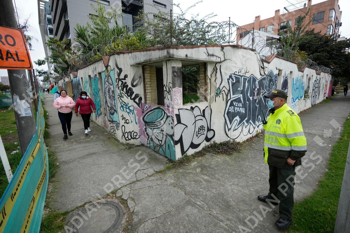 A police officer stands guard outside the Venezuelan consulate that was closed three years prior in Bogota, Colombia, Monday, Sept. 5, 2022. The Venezuelan government appointed Felix Plasencia as its ambassador to Colombia as it reestablishes diplomatic relations with Colombia. (AP Photo/Fernando Vergara)