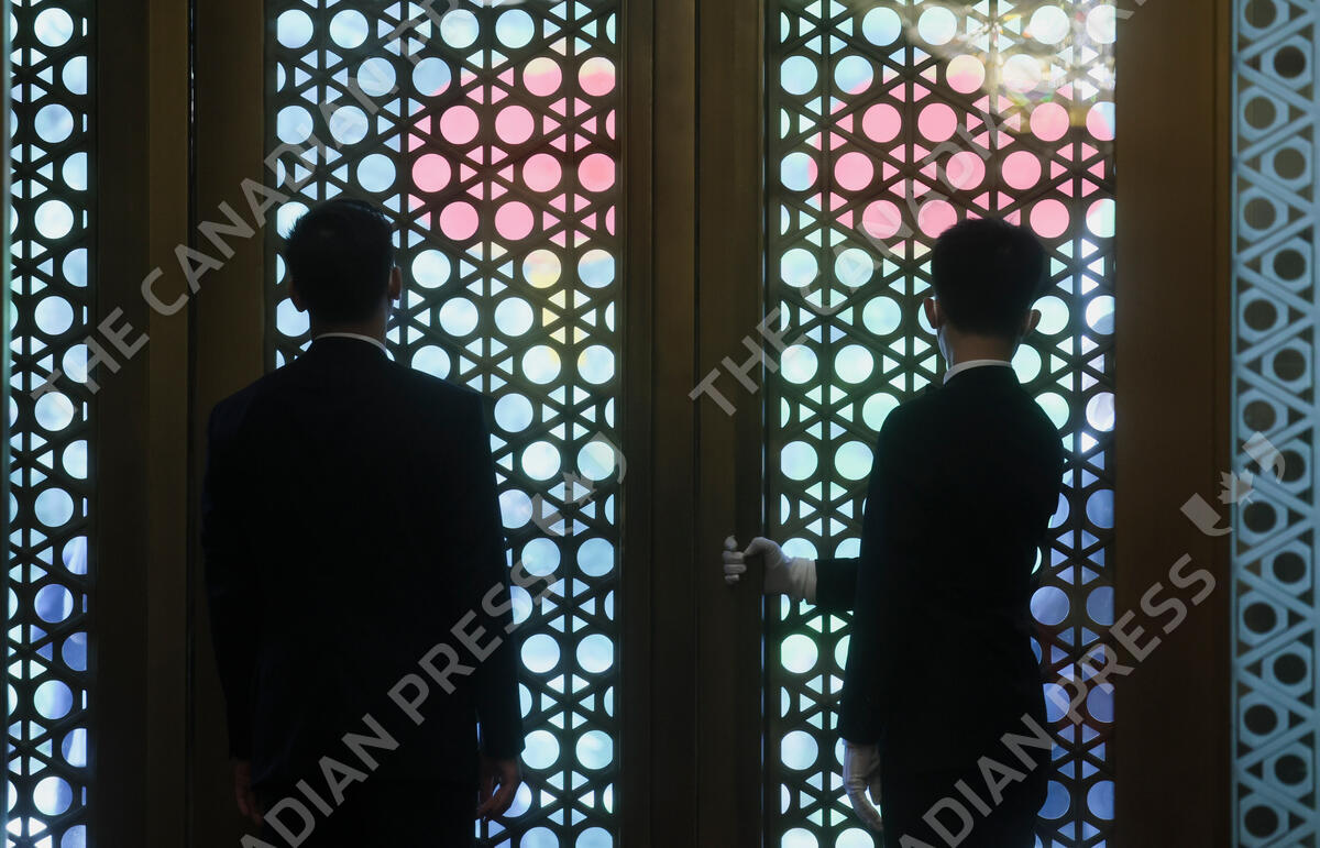 Doormen await the arrival of U.S. Secretary of State Antony Blinken, ahead of his meeting with China's Foreign Minister Qin Gang, at the Diaoyutai State Guesthouse in Beijing, China, Sunday, June 18, 2023. (Leah Millis/Pool Photo via AP)