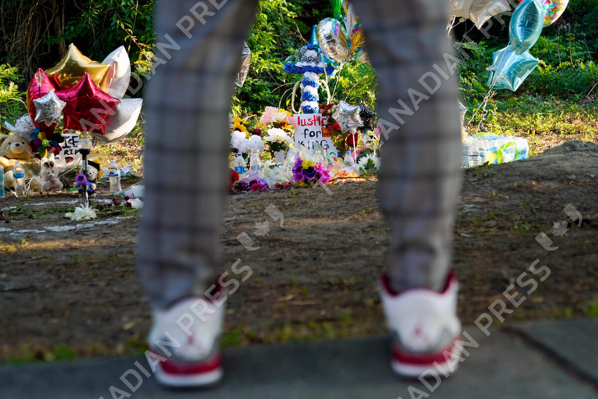 Eric Clyburn stands in front of a memorial for Cyrus Carmack-Belton, 14, in Columbia, S.C., on Friday, June 2, 2023. The Black teenager will be laid to rest less than a week after officials say a South Carolina gas station owner gunned him down in a killing that has prompted cries of racial profiling. (AP Photo/Erik Verduzco)