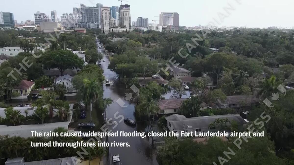 Parts of South Florida began cleaning up Thursday after the unprecedented storm that trapped motorists, dumped upward of 2 feet of rain in a matter of hours, caused widespread flooding, closed a key airport and turned thoroughfares into rivers. There were no immediate reports of injuries or deaths. (April 13) (AP Video: Rebecca Blackwell)