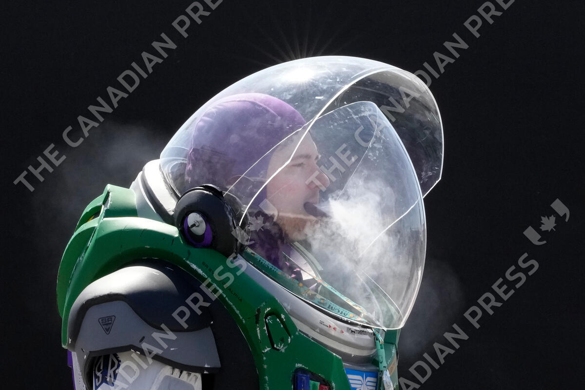 A man in a Buzz Lightyear costume smokes as he arrives to attend the MCM Comic Con at Excel in London, Friday, May 26, 2023. The event is a three-day celebration of all things pop culture. (AP Photo/Kirsty Wigglesworth)