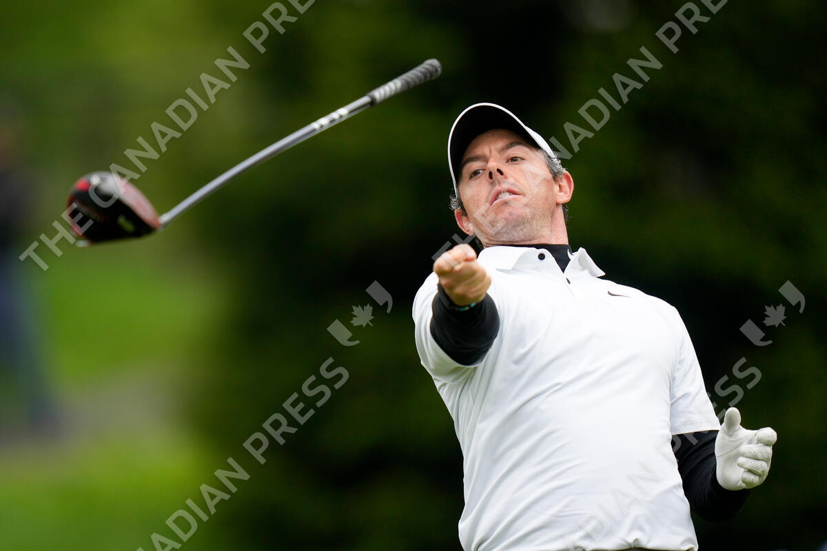 Rory McIlroy, of Northern Ireland, reacts after a poor drive on the 17th hole during the third round of the PGA Championship golf tournament at Oak Hill Country Club on Saturday, May 20, 2023, in Pittsford, N.Y. (AP Photo/Seth Wenig)