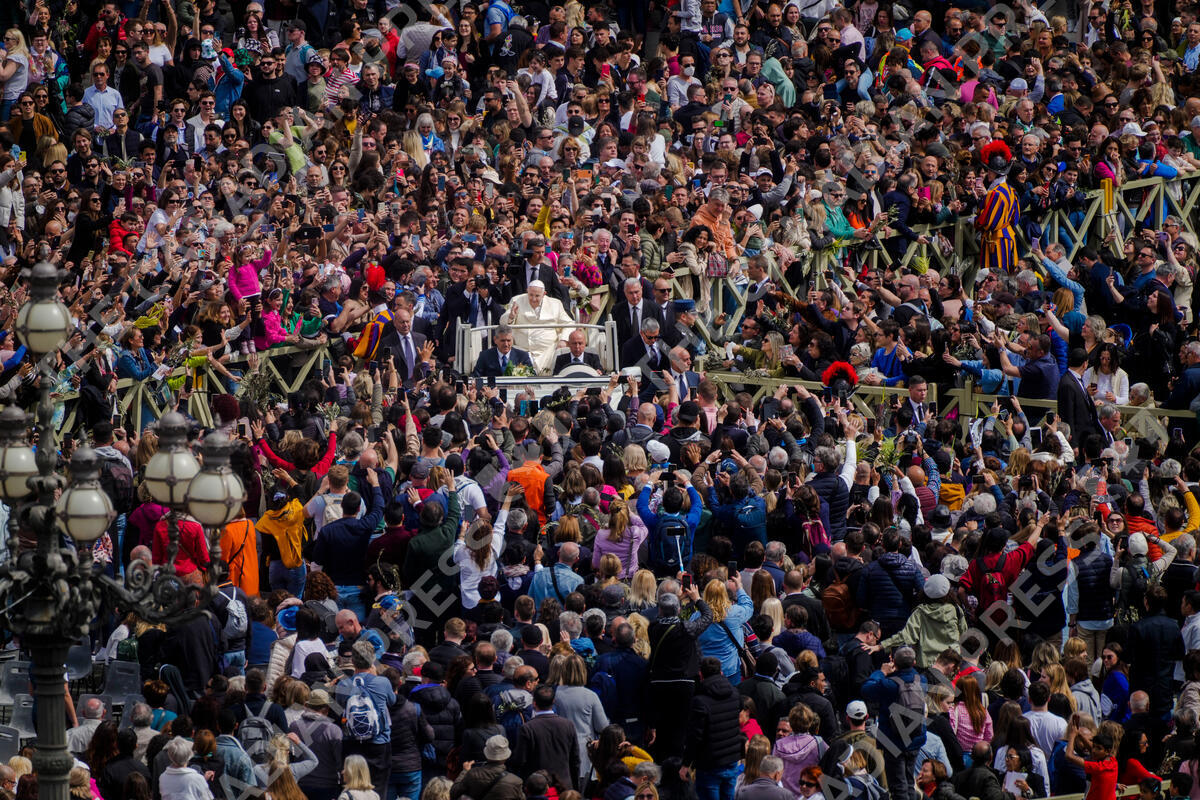 Pope Francis leaves after celebrating the Palm Sunday's mass in St. Peter's Square at The Vatican Sunday, April 2, 2023, a day after being discharged from the Agostino Gemelli University Hospital in Rome, where he has been treated for bronchitis, The Vatican said. The Roman Catholic Church enters Holy Week, retracing the story of the crucifixion of Jesus and his resurrection three days later on Easter Sunday. (AP Photo/Gregorio Borgia)