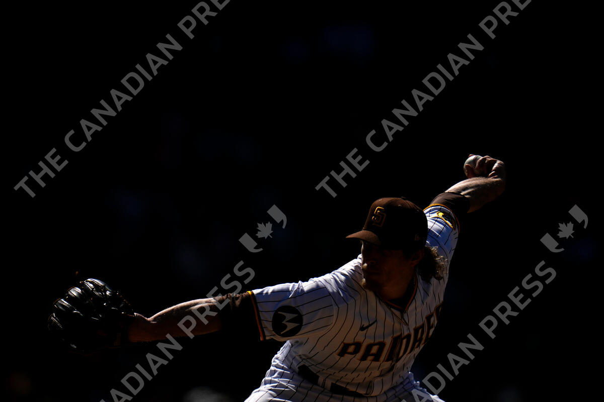 San Diego Padres relief pitcher Tim Hill works against a Cincinnati Reds batter during the eighth inning of a baseball game Wednesday, May 3, 2023, in San Diego. (AP Photo/Gregory Bull)