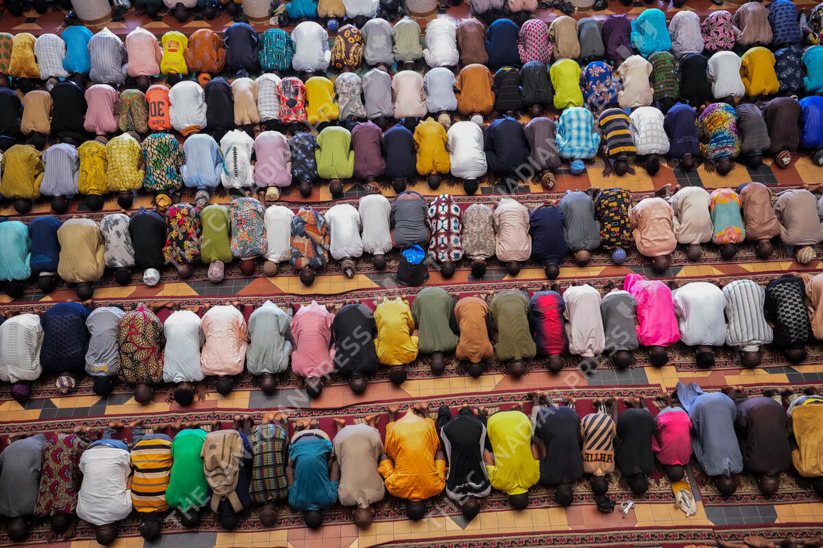 Nigeria Muslims offer prayers at the central Mosque in Lagos, on the first Friday of Ramadan in Lagos, Nigeria, Friday, March 15, 2024. Muslims throughout the world are marking the holy month of Ramadan, when the faithful fast from dawn to dusk. (AP Photo/Sunday Alamba)