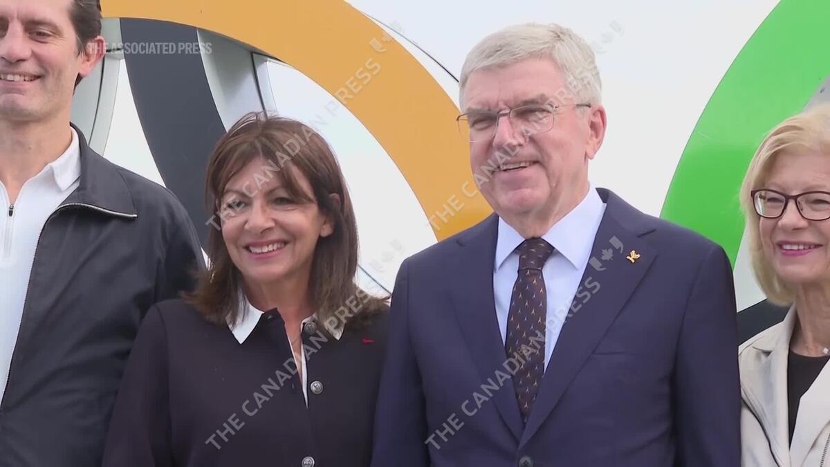 A temporary Olympic rings structure was installed in Paris on the Pont d'Iéna on Saturday in the presence of Paris Mayor Anne Hidalgo and Olympic Committee President Thomas Bach, marking an important moment in the city's post-Games transformation.