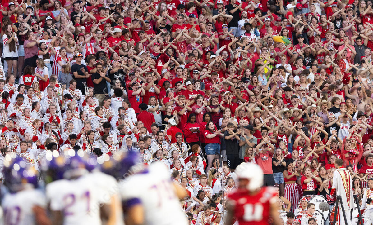 Nebraska fans cheer for the defense as they play against Northern Iowa during the first half of an NCAA college football game Saturday, Sept. 14, 2024, in Lincoln, Neb. (AP Photo/Rebecca S. Gratz)